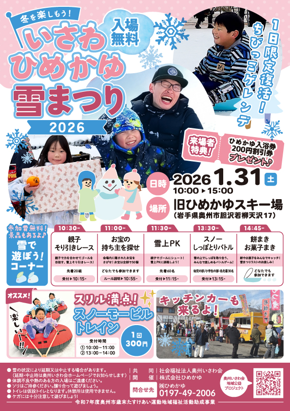 - 雪の状況により延期または中止する場合があります。その際は「奥州いさわ会」ホームページにてお知らせいたします。